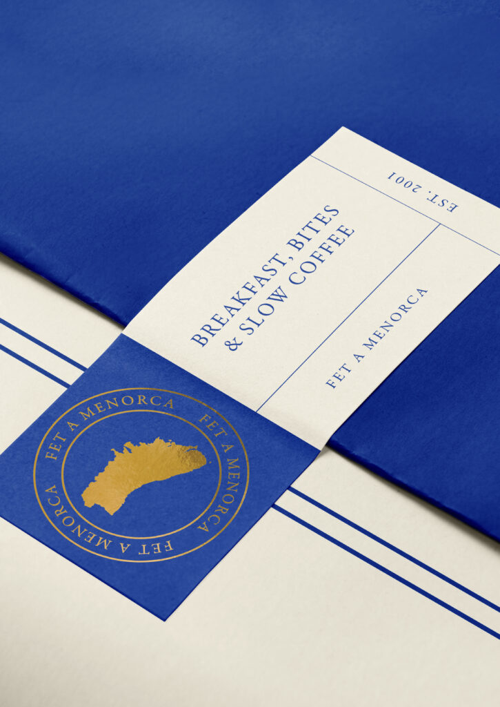 The rebranding introduced a new logo and tagline, along with custom typography, a new multichromatic colour palette — built on blue and white and softened with pastel tones — and distinctive and detailed packaging. Playful messaging, appear across signature packaging, signage, and stationery, capturing the laid-back lifestyle of Menorca.